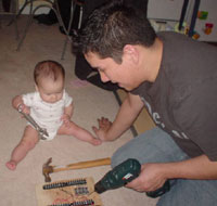 Just helpin' daddy build his robot. |