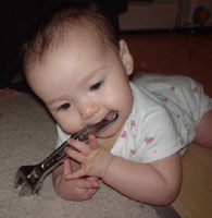 Auntie Dana, aren't I cute in this outfit you got me? And thank you Great Aunt Virginia and Uncle Dick for this wire thingy. I LOVE it!! |
